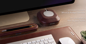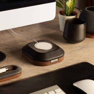 The Magsafe Wood & Leather mount, is designed as a secure mount for your magsafe charger, with a unique combination of Caterina soft leather and Guayubira duo-tone wood, the MagSafe charger stand is precisely designed to fit the MagSafe charging cable turning it into a charging station. Its ergonomic shape and dependable grip will anchor to the desk so it won’t slide all over the place. A timeless apple magsafe accessory that’s perfect for your desk.