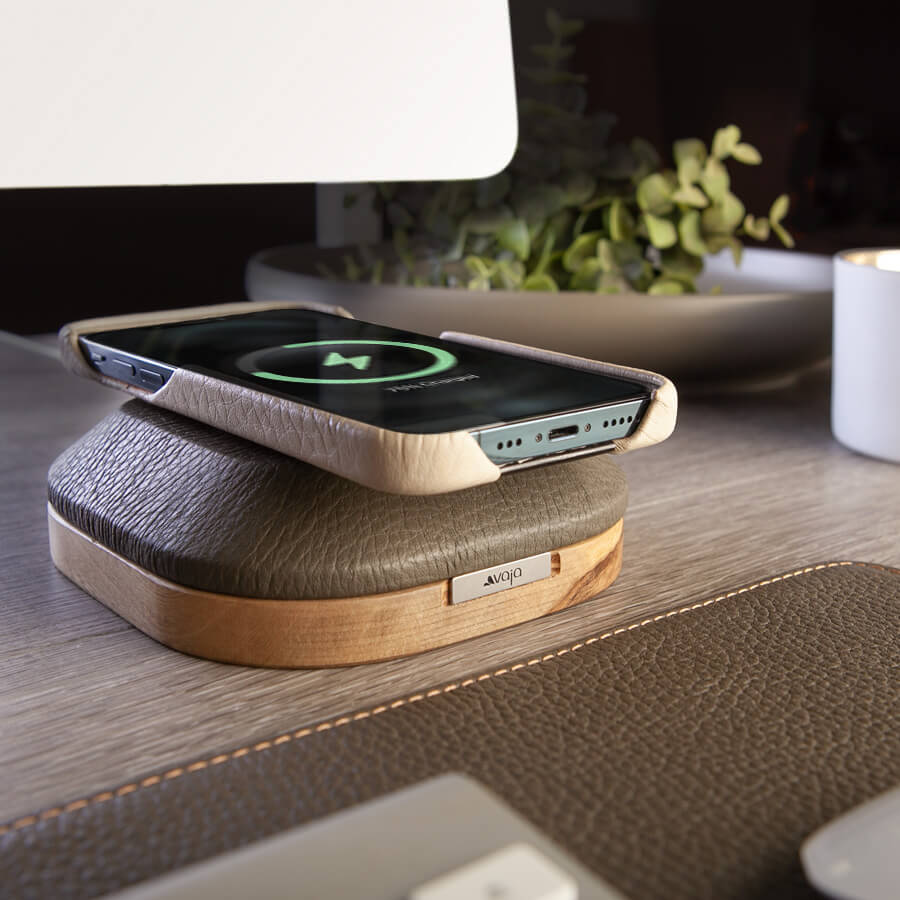 Our leather and wood MagSafe charger stand features a tight fit so when you pick up your phone the charger will not come with you, a non-slippery base, and an absolutely handsome design mixed with wood and leather. Define your space with our leather MagSafe holder and let us improve your MagSafe experience.